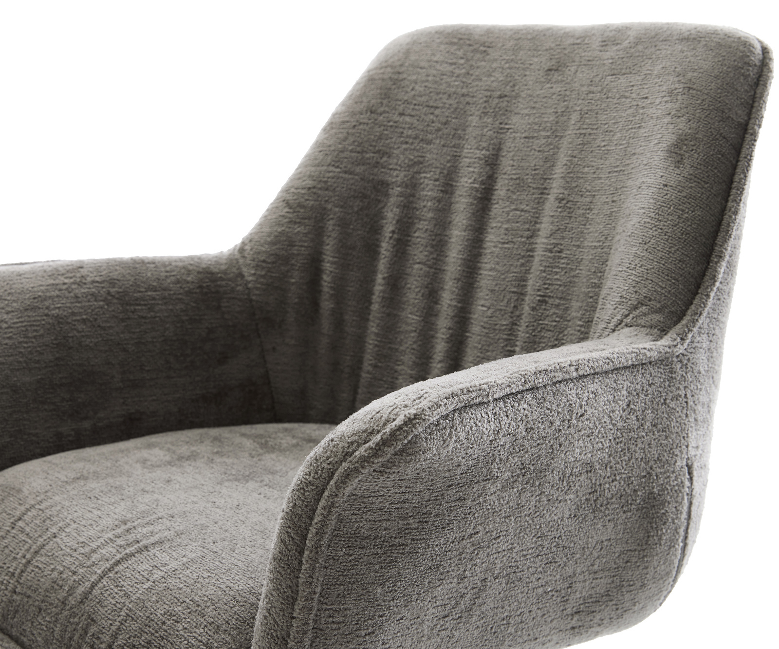Táto stolička zaujme kvalitným poťahom z bouclé v teplom tmavobéžovom odtieni. Jemná štruktúra a pokojná farba dodávajú nábytku modernú a útulnú charizmu – ideálne do jedálne alebo čitateľského kútika.