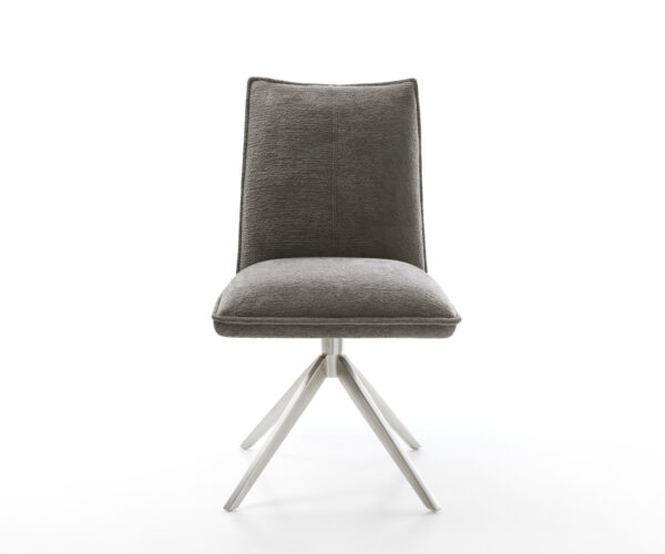Jedálenská stolička Lelio-Flex bouclé mäkký tmavobéžová krížová podstava široká nerezová oceľ otočný 360° hojdacia funkcia vrecková pružina