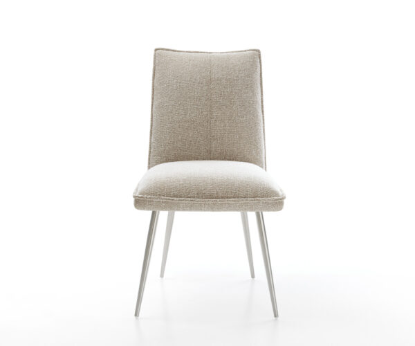 Jedálenská stolička Lelio-Flex tkanina mäkký béžová 4-nohá zúžená nerezová oceľ vrecková pružina