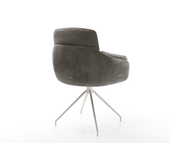 Táto stolička zaujme kvalitným poťahom z bouclé soft v teplom tmavobéžovom odtieni. Jemná štruktúra a pokojná farba dodávajú nábytku modernú, útulnú charizmu – ideálne do jedálne alebo čitateľského kútika.
