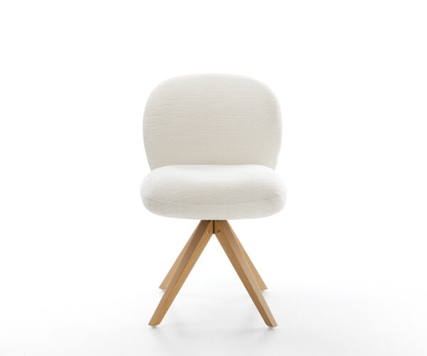 Jedálenská stolička Nube-Flex bouclé mäkký béžová drevená podstava hranatá prírodná 180° otočný vrecková pružina