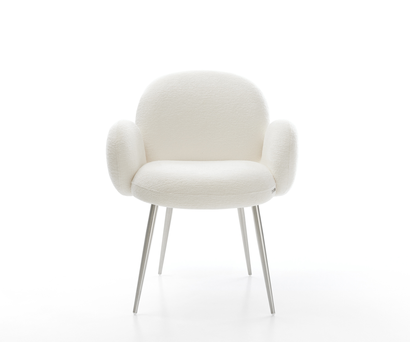 Moderná zaoblená jedálenská stolička Nube-Flex s opierkami vyžaruje pravý životný štýl vo tvojej jedálni a vďaka extra hrubej čalúnenej vrstve s kvalitným vreckovým pružinovým jadrom poskytuje jedinečný komfort sedenia. Ergonomický dizajn v tvare mušle šetrí tvoj chrbát. Optické oddelenie sedadla, operadla a opierok dodáva Nube-Flex nezameniteľný vzhľad, ktorý robí zo stoličky skutočný dizajnový klenot.