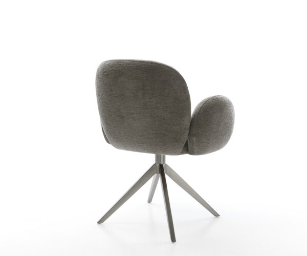 Táto stolička zaujme kvalitným poťahom z bouclé soft v teplom tmavobéžovom odtieni. Jemná štruktúra a pokojná farba dodávajú nábytku modernú, útulnú charizmu – ideálne do jedálne alebo čítacieho kútika.