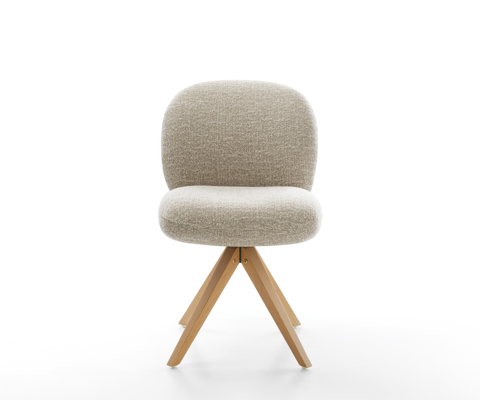Jedálenská stolička Nube-Flex tkanina mäkký béžová drevená podstava hranatá prírodná 180° otočný vrecková pružina