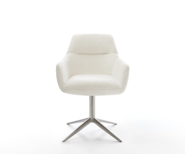 Jedálenská stolička Pejo-Flex bouclé mäkký béžová podstava nerezová oceľ 360° otočný hojdacia funkcia vrecková pružina