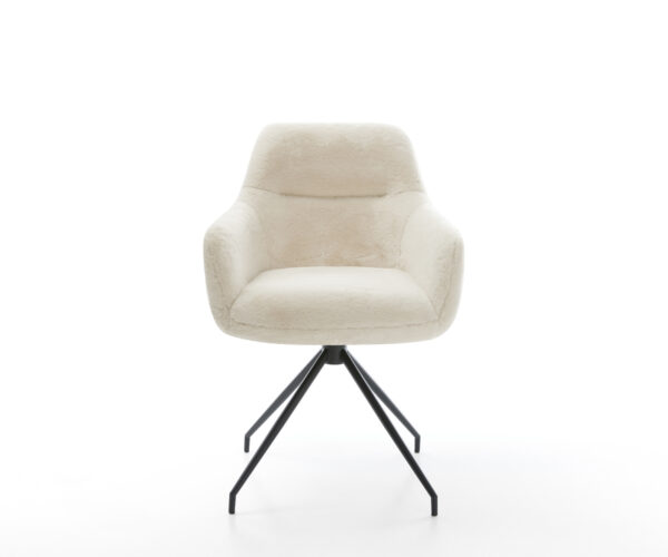 Ušľachtilý plyšový poťah v jemnej krémovo-bielej farbe dodáva stoličke obzvlášť elegantnú charizmu. Mäkký povrch poskytuje maximálny komfort sedenia – ideálne pre moderné jedálne a obývacie priestory s kvalitným zariadením.