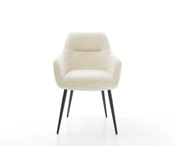 Čalúnenie z mäkkého teddy látky v béžovej farbe zabezpečuje obzvlášť príjemný pocit pri sedení. Jemná látka prináša útulnosť a štýl k jedálenskému stolu – ideálne pre príjemnú atmosféru domova.