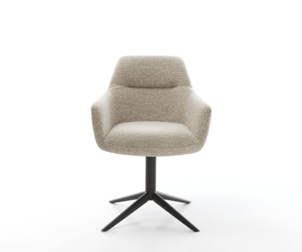 Jedálenská stolička Pejo-Flex tkanina mäkký béžová krížová podstava čierna 360° otočný hojdacia funkcia vrecková pružina