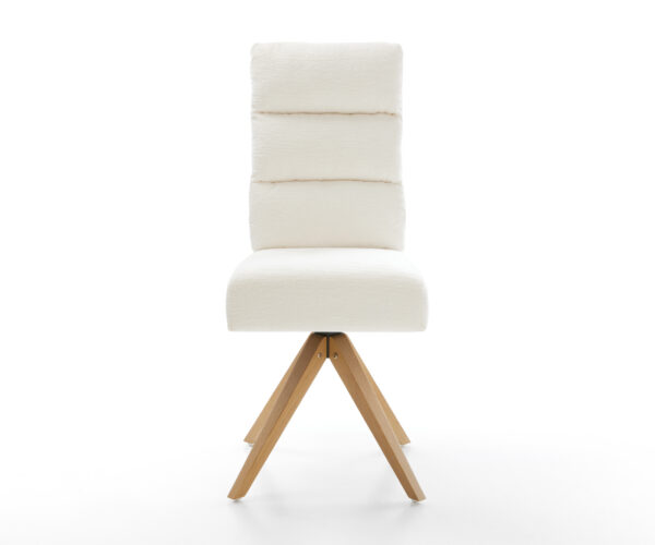 Výrazná krížová podstava kombinuje klasický vzhľad so štyrmi hranatými nohami a prirodzenou ľahkosťou. Podstava sa môže otáčať až o 180 stupňov a má praktickú spätnú funkciu, ktorá ti príjemne uľahčí konverzáciu pri jedálenskom stole.