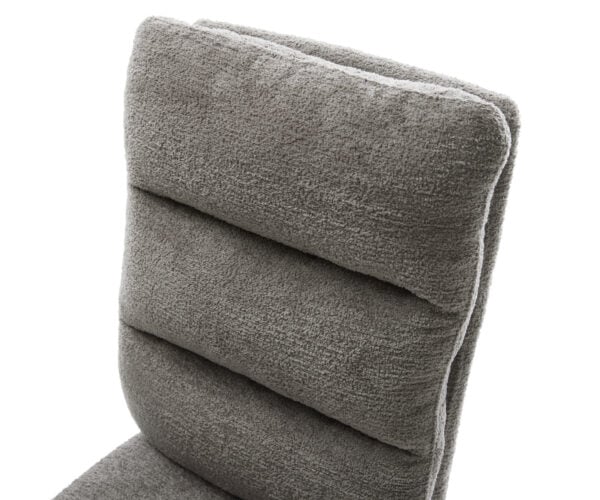 Táto stolička zaujme kvalitným poťahom z bouclé v teplom tmavobéžovom odtieni. Jemná štruktúra a pokojná farba dodávajú nábytku modernú, útulnú charizmu – ideálne do jedálne alebo čitateľského kútika.