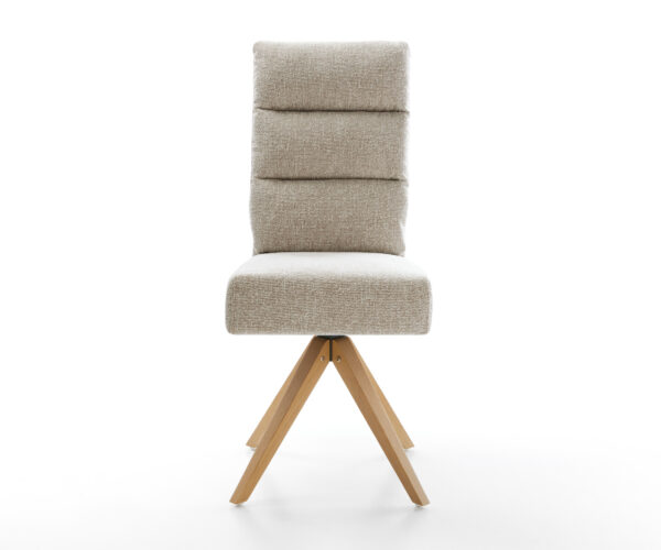 Výrazná krížová podstava kombinuje klasický vzhľad so štyrmi hranatými nohami a prirodzenou ľahkosťou. Dá sa otočiť až o 180 stupňov a disponuje praktickou spätnou funkciou, ktorá ti príjemne uľahčí konverzáciu pri jedálenskom stole.
