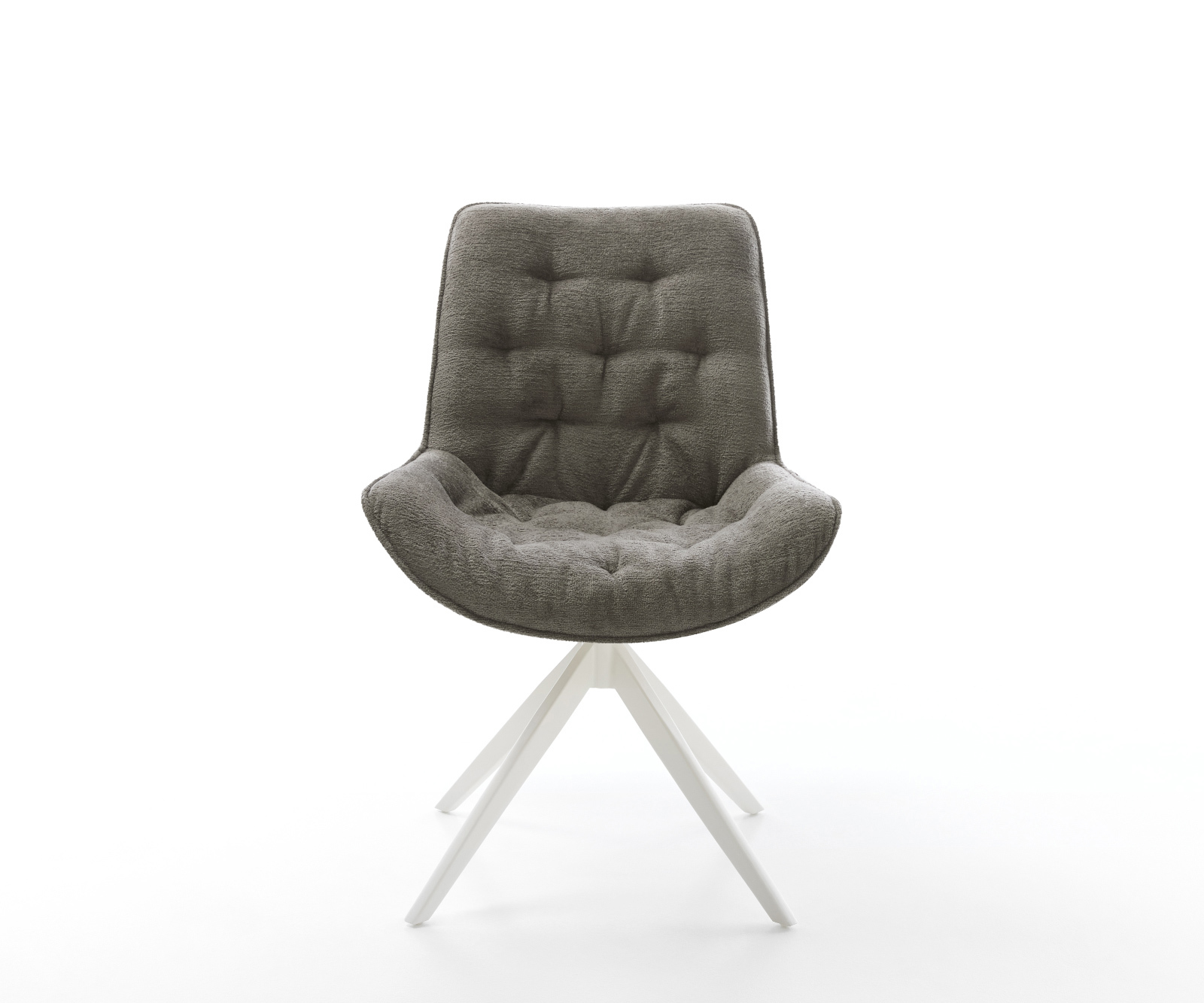 Jedálenská stolička Taimi-Flex bouclé mäkký tmavobéžová krížová podstava široká biela 360° otočný kolískacia funkcia