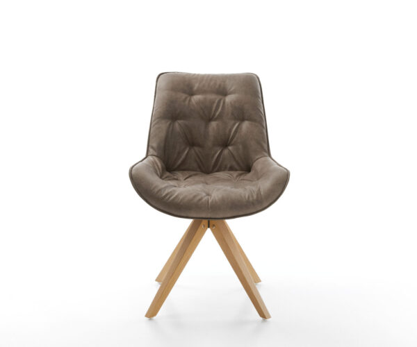 Výrazná krížová podstava kombinuje klasický vzhľad so štyrmi hranatými nohami a prirodzenou ľahkosťou. Podstava sa dá otočiť až o 180 stupňov a disponuje praktickou spätnou funkciou, ktorá vám príjemne uľahčí konverzáciu pri jedálenskom stole.