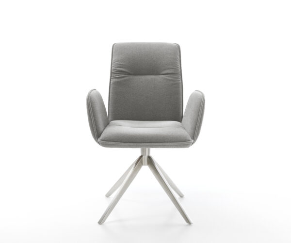 Vinja zaujme svojím ležérnym poťahom a elegantným lemovaním. Voľne stojace opierky robia z tejto jedálenskej stoličky obzvlášť extravagantný dizajnový prvok vo vašej domácnosti. Kvalitne spracovaná čalúnená sedacia časť je úplne polstrovaná a zabezpečuje príjemný pocit pri sedení.