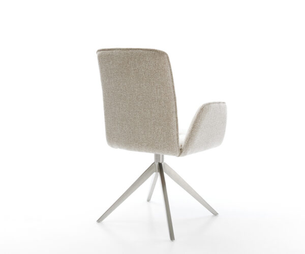 Jedálenská stolička Vinja-Flex tkanina mäkký béžová krížová podstava široká nerezová oceľ 360° otočný hojdacia funkcia