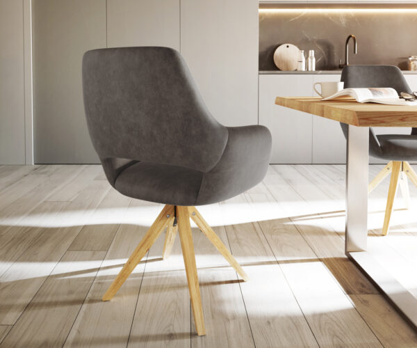 Jedálenská stolička Yago s opierkami rúk mikrovlákno antracit vintage – stoličkový systém od DELIFE