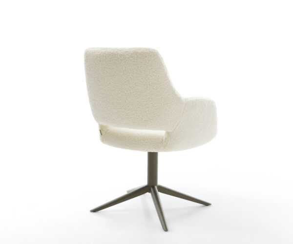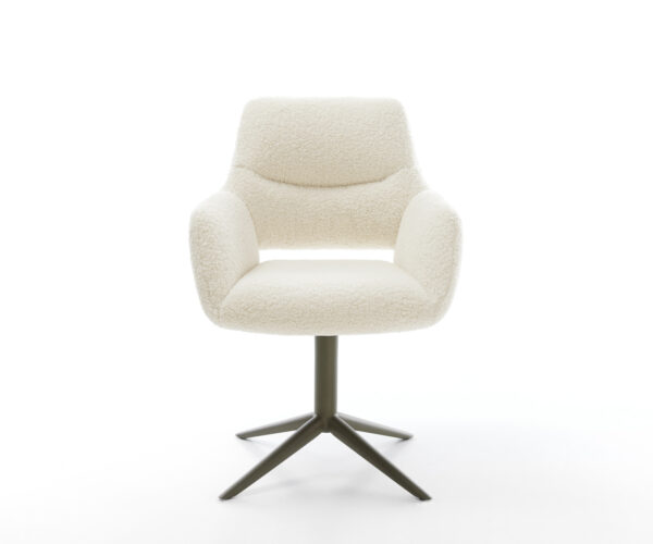 Potiahnutá plyšovou teddy látkou v béžovej farbe, ktorá zabezpečuje obzvlášť príjemný pocit pri sedení. Mäkká látka prináša pohodlie a štýl k jedálenskému stolu – ideálne pre útulnú atmosféru.