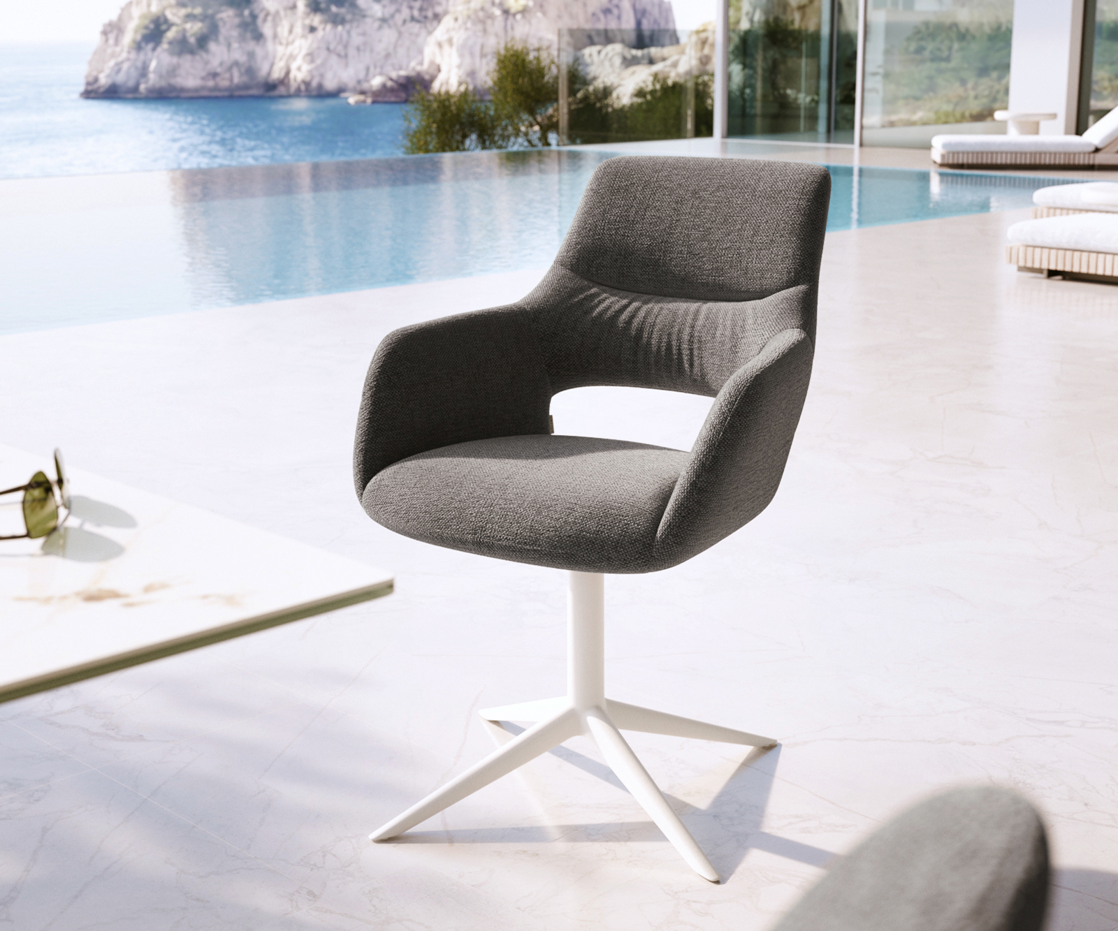 Jedálenská stolička Yago-Flex s opierkami texturovaná látka grafitová biela krížová podstava otočný o 360° hojdacia funkcia