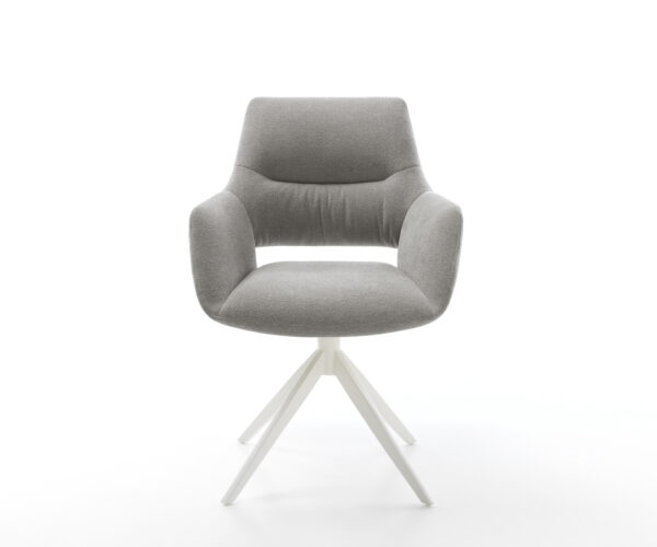 Jedálenská stolička Yago-Flex s opierkami texturovaná látka mäkká sivá krížová podstava široká biela 360° otočný hojdacia funkcia vrecková pružina