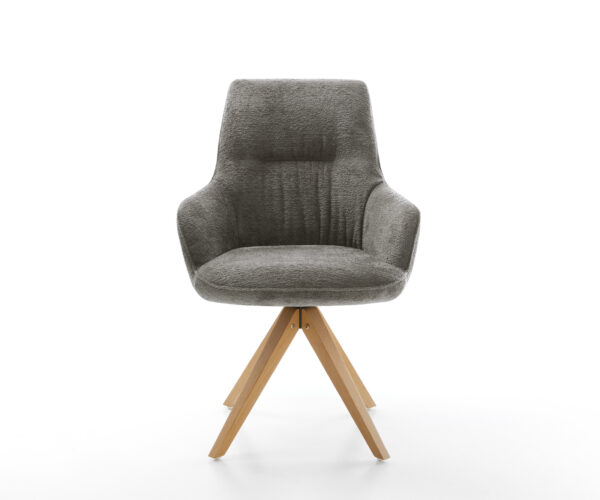 Výrazná krížová podstava kombinuje klasický vzhľad so štyrmi hranatými nohami a prirodzenou ľahkosťou. Dá sa otočiť až o 180 stupňov a má praktickú spätnú funkciu, ktorá ti príjemne uľahčí konverzáciu pri jedálenskom stole.