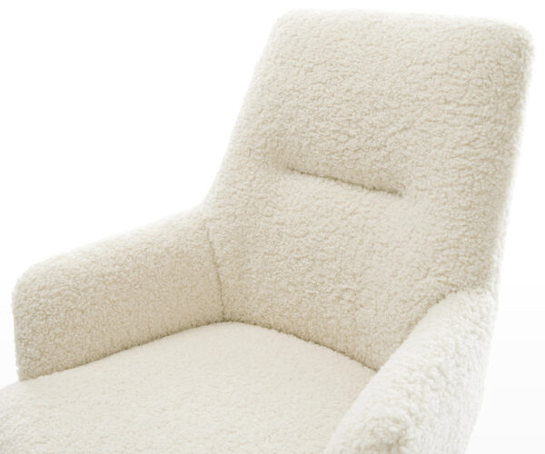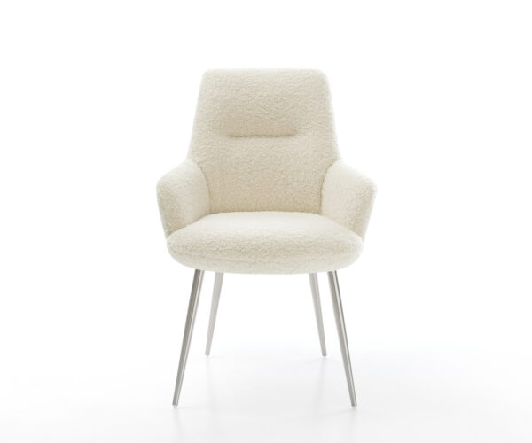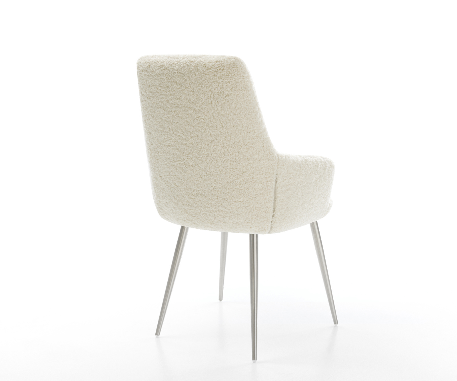 Čalúnená plyšovou teddy látkou v béžovej farbe, ktorá zabezpečuje obzvlášť útulný pocit pri sedení. Mäkká látka prináša pohodlie a štýl k jedálenskému stolu – ideálna pre príjemnú atmosféru domova.