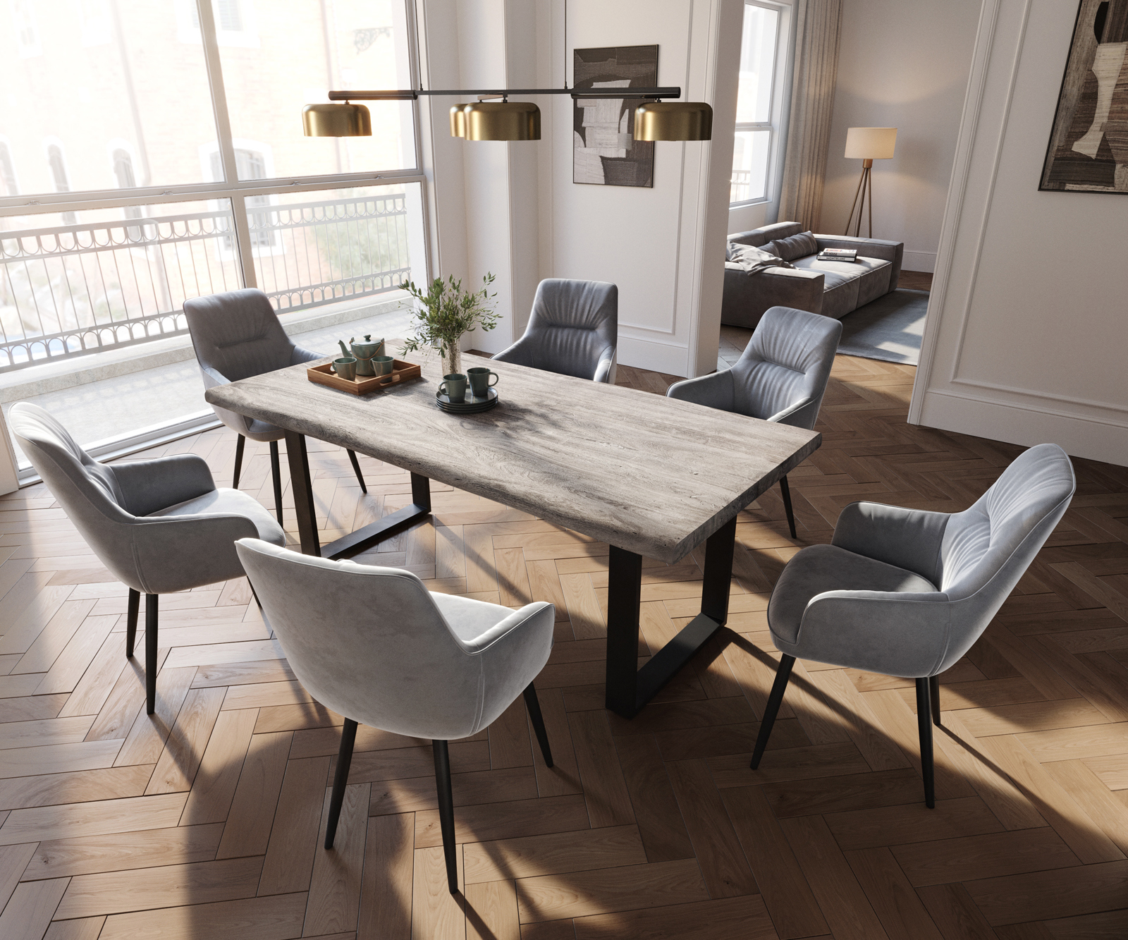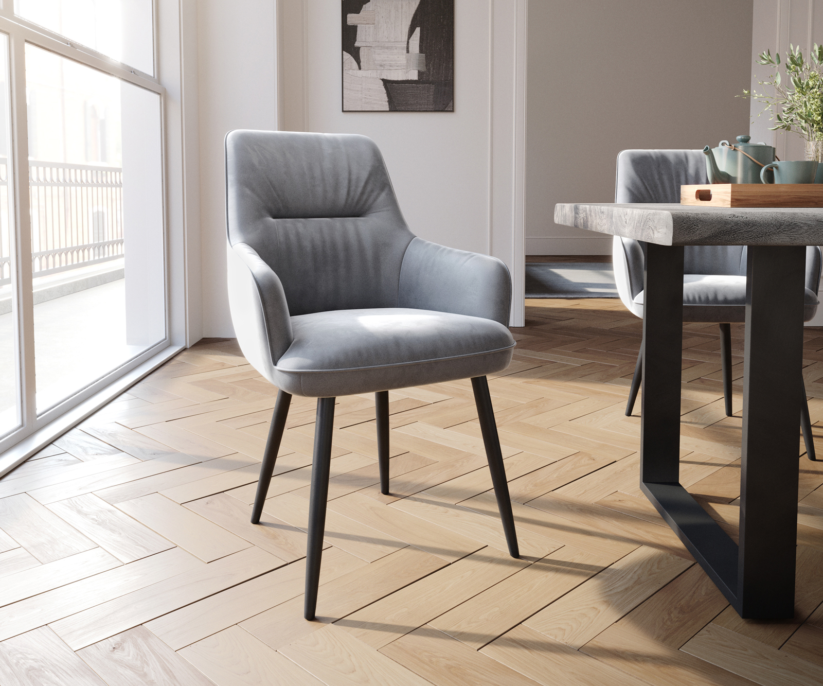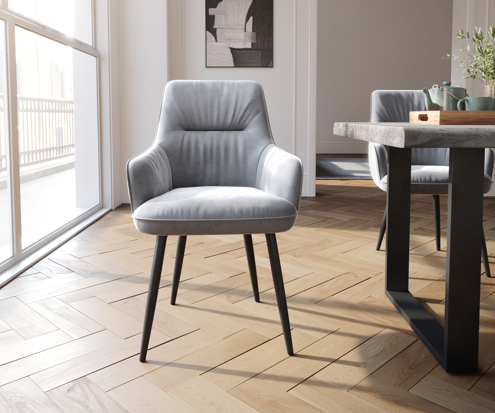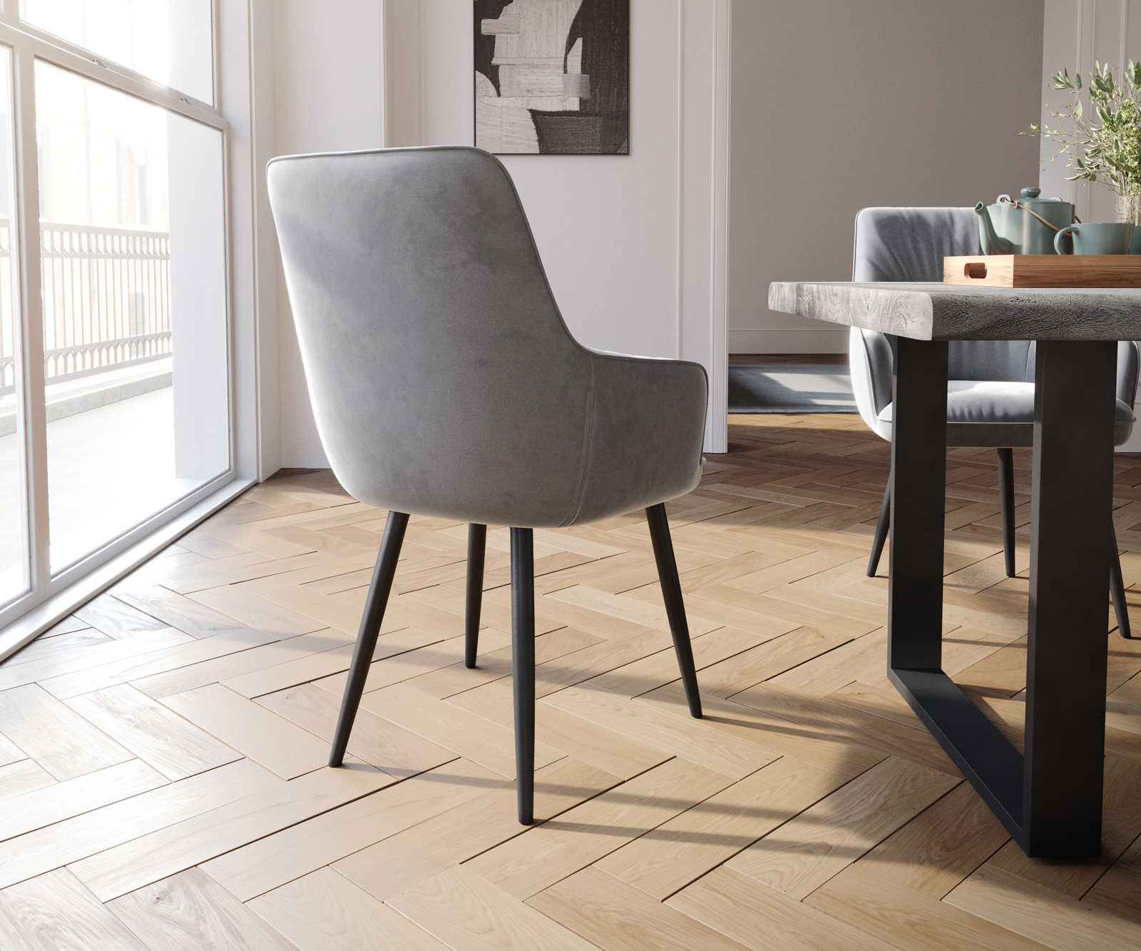 Jedálenská stolička Zelia s opierkami zamat sivá – stoličkový systém od DELIFE