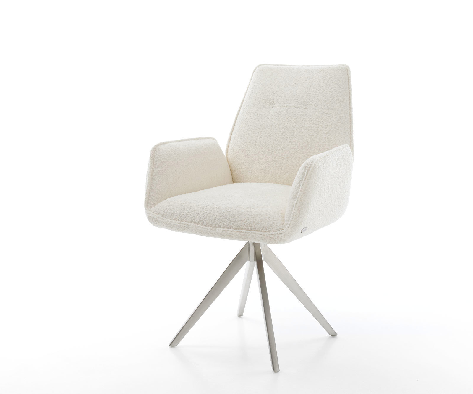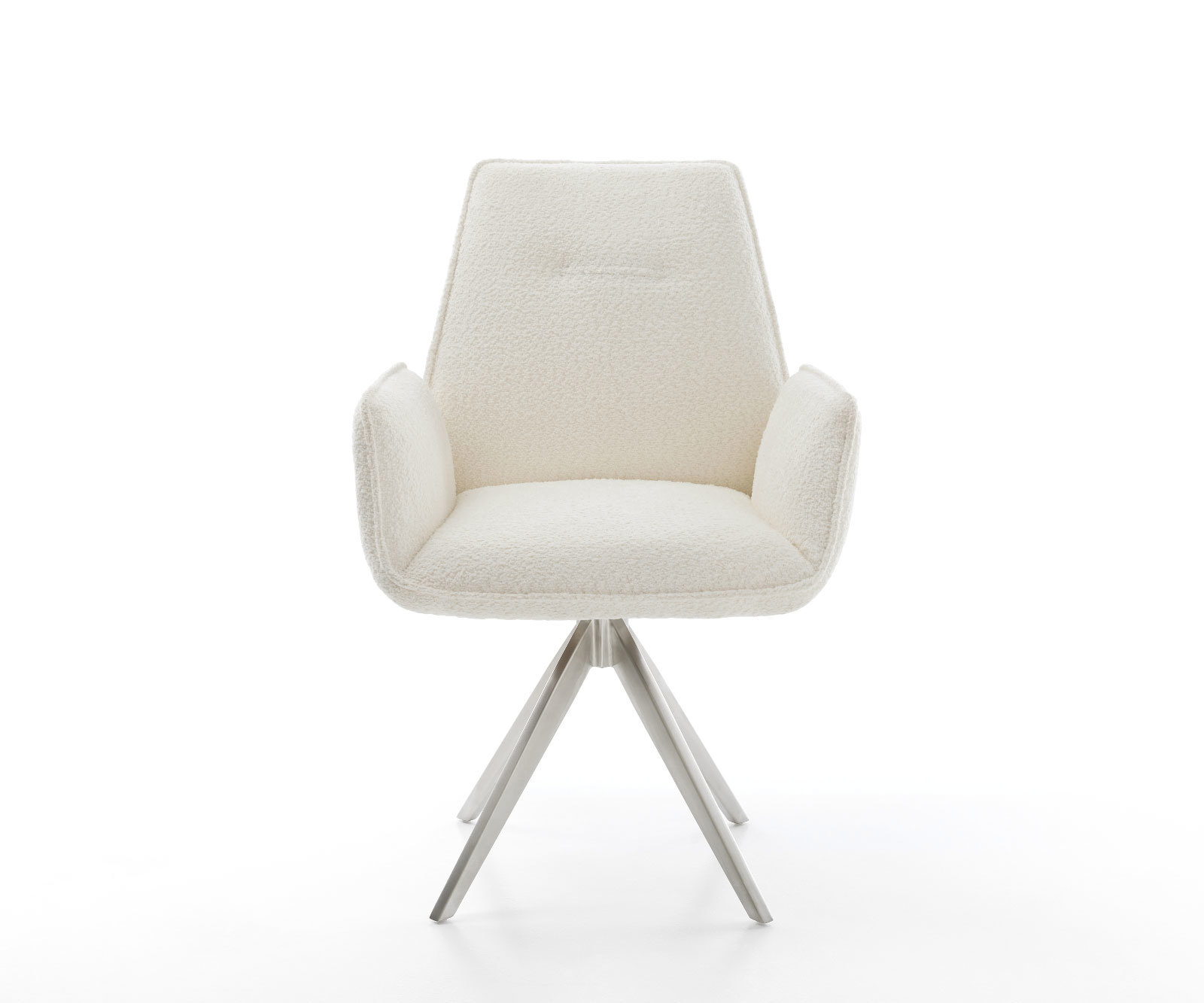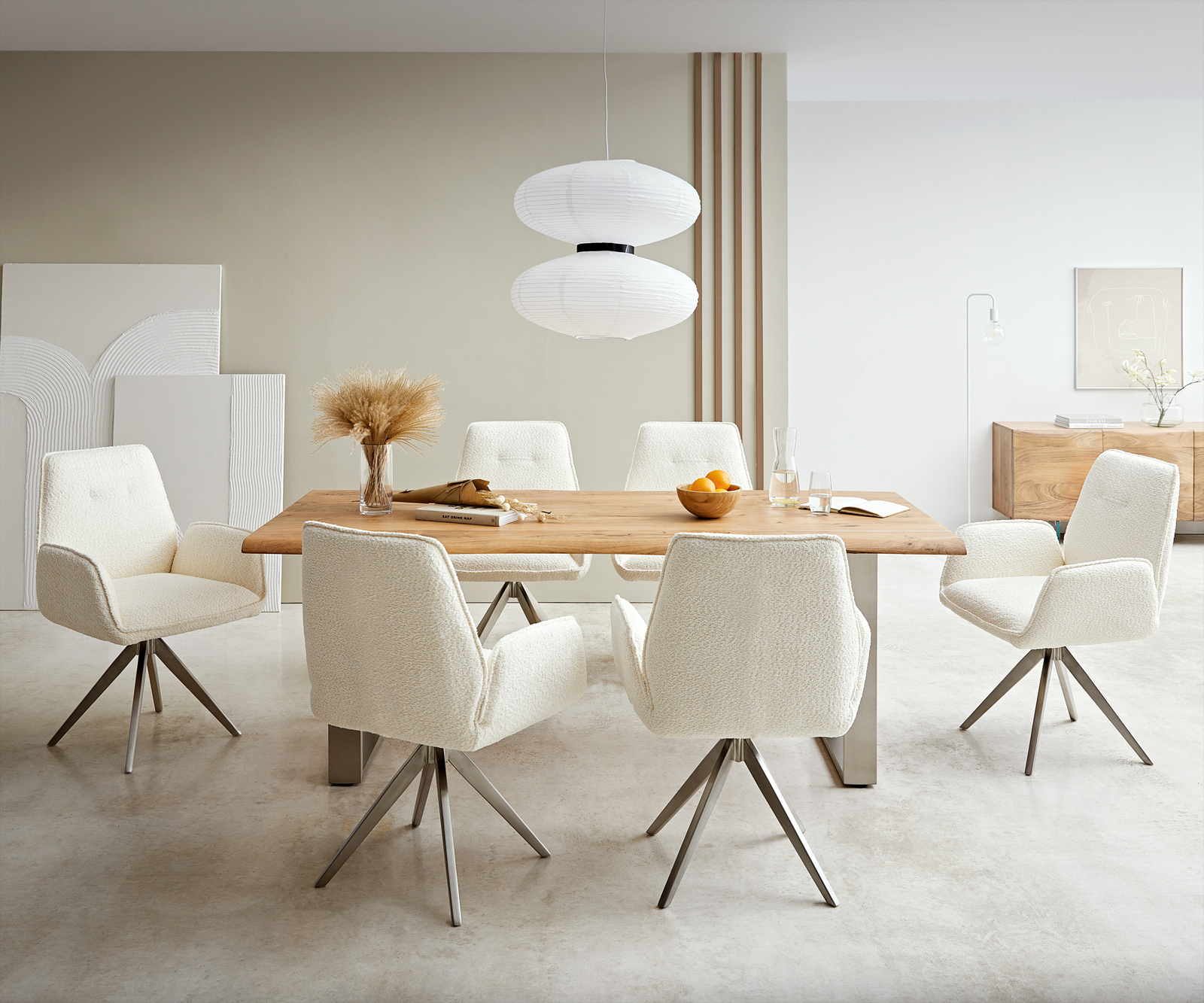 Elegantná látka bouclé je obzvlášť mäkká a príjemná na dotyk, zároveň však odolná a nenáročná na údržbu. Žiari v teplom bielom odtieni a v každej jedálni vytvára nadčasovo krásne akcenty.