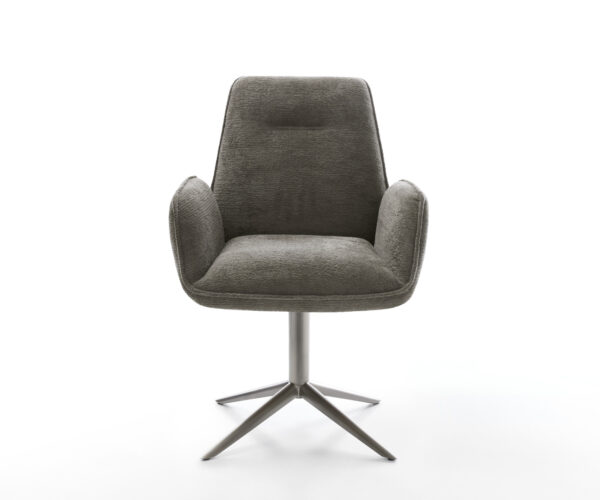 Jedálenská stolička Zoa-Flex bouclé mäkký tmavobéžová podstava dymovo čierna 360° otočný hojdacia funkcia vrecková pružina