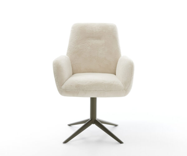 Luxusný plyšový poťah v jemnej krémovo-bielej farbe dodáva stoličke obzvlášť elegantnú charizmu. Mäkký dotyk poskytuje najvyšší komfort sedenia – ideálne pre moderné jedálne a obytné priestory s kvalitným zariadením.