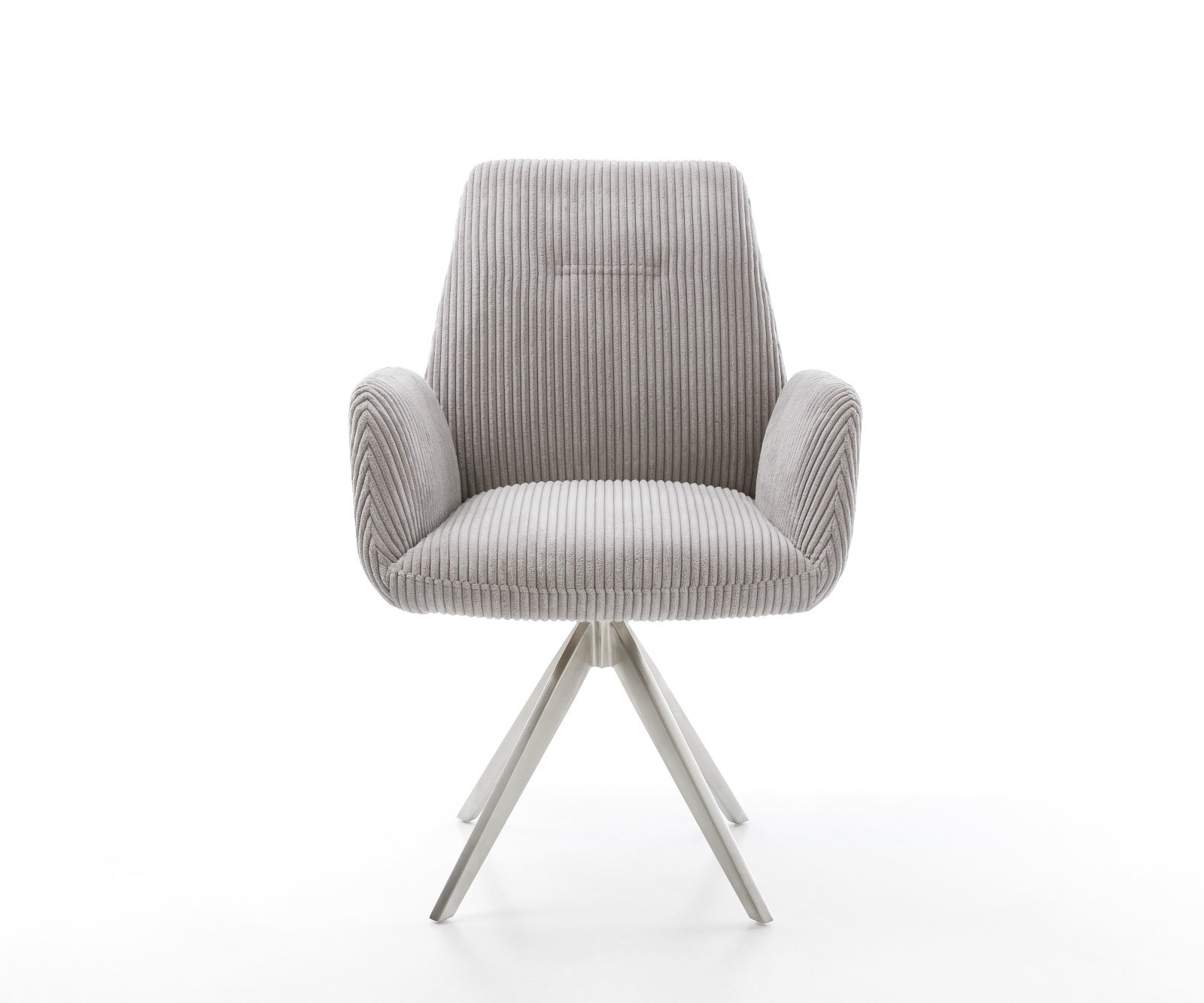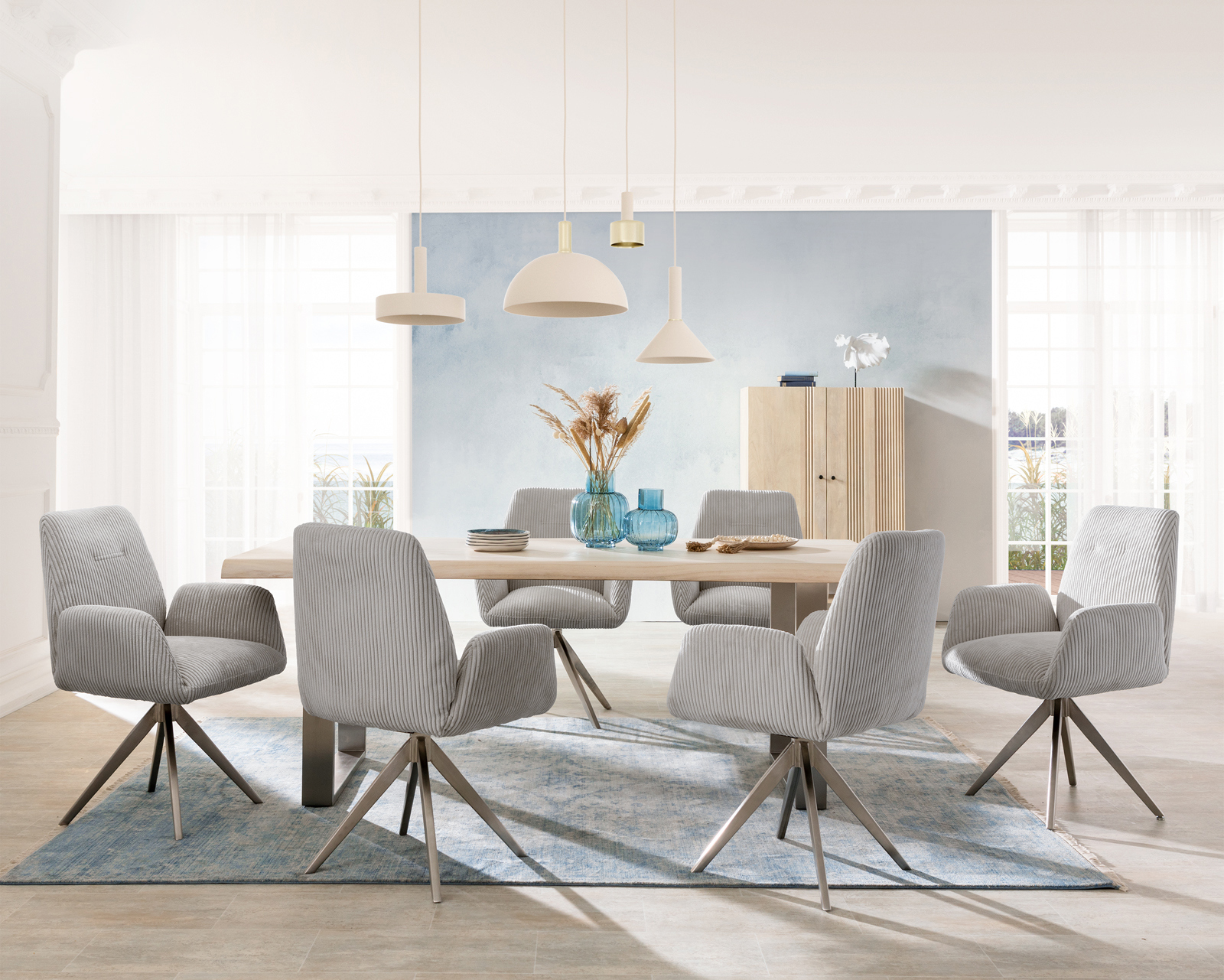 Šikovná krížová podstava s praktickou spätnou funkciou nielenže zabezpečuje mimoriadne stabilný stoj, ale dá sa tiež otočiť až o 180 stupňov. Neoceniteľné, keď chcete venovať plnú pozornosť viacerým hosťom pri stole zároveň.