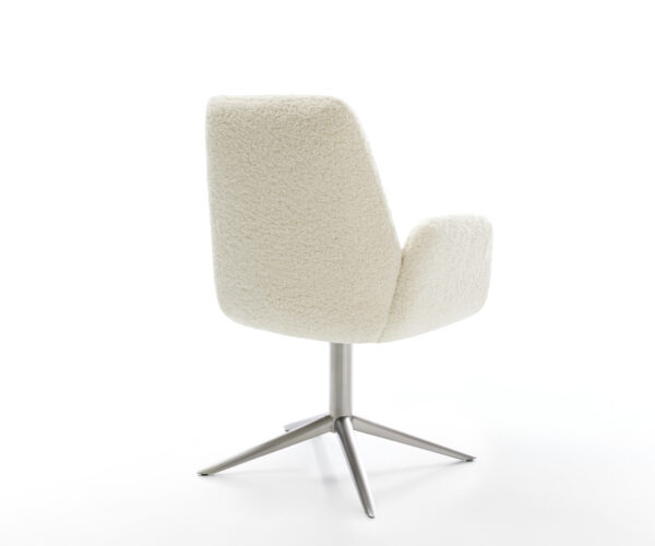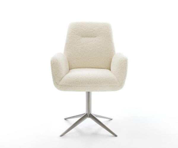 Potiahnutá mäkkou teddy látkou v béžovej farbe, ktorá zabezpečuje obzvlášť príjemný pocit pri sedení. Mäkká látka prináša útulnosť a štýl k jedálenskému stolu – ideálne pre domácku atmosféru.