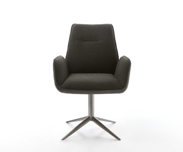 Sedacia mušľa Zoa sľubuje vďaka svojej kvalitnej čalúneniu a voľne stojacim, rovnako príjemne mäkko čalúneným opierkam najvyšší komfort sedenia. Náročné spracovanie detailov, ako je extravagantné dvojité ozdobné prešívanie s jemným prešívaním na operadle alebo klasický lem, robí z tohto prvku stoličky mimoriadne elegantný dizajnový kus nábytku.