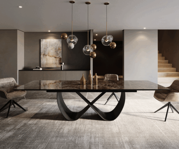 Jedinečný jedálenský stôl – Edge Emperador Extra v mramorovom vzhľade