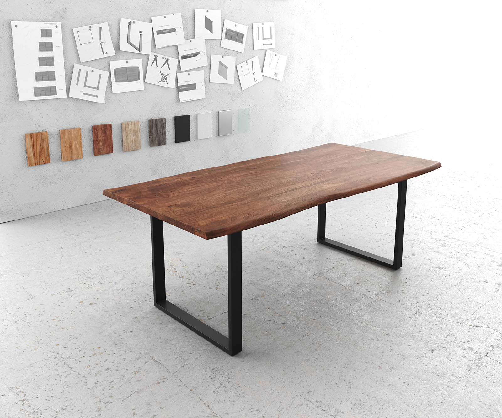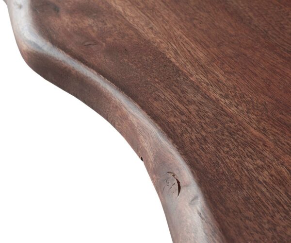 Live-Edge jedálenský stôl s prírodnou hránou z mimoriadne odolného akáciového dreva sa stane jedinečným pútačom pozornosti vo vašej jedálni. Každý Live-Edge stôl je totiž absolútnym unikátom, ktorý sa vyznačuje svojou výnimočnou kvalitou a vysokokvalitným spracovaním. Teplý hnedý odtieň obdĺžnikovej stolovej dosky krásne ladí s jemne zaoblenými prírodnými hranami a vytvára príjemnú a priateľskú atmosféru. Matný lesk hnedého akáciového dreva zvýrazňuje jemnú kresbu dreva a umožňuje jeho skvelé začlenenie do rôznych štýlov bývania. Klasický tvar stola poskytuje pohodlný priestor pre spoločné a uvoľnené chvíle.
