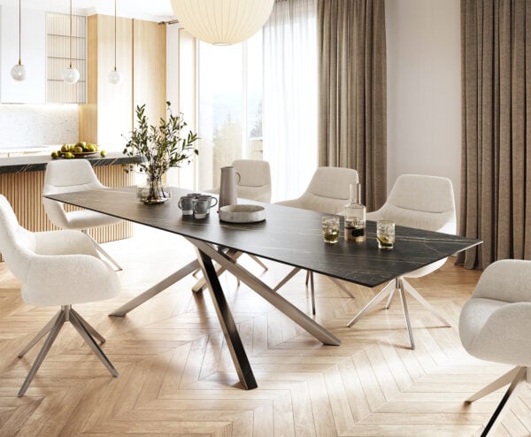• Doska stola je vyrobená z jedného celistvého keramického plátu a získava svoju jedinečnosť v harmonickom celkovom vzhľade.