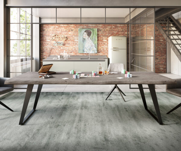 Vyrobený z obzvlášť tvrdého akáciového dreva, stôl Live-Edge zaujme svojimi jemne zakrivenými, prírodnými hranami stromu a exkluzívnym, striebristo lesklým platinovým odtieňom. Vysokokvalitné spracovanie masívneho dreva a jeho atmosférický dizajn robia z tohto jedálenského stola extravagantné centrum tvojej jedálne. Každý stôl Live-Edge je jedinečný originál, ktorý priťahuje obdivné pohľady, no zároveň sa harmonicky začlení do mnohých štýlov zariadenia. Klasická obdĺžniková stolová doska ponúka vynikajúci komfort miesta a vďaka svojej mimoriadne vysokej kvalite odoláva každodenným nárokom obzvlášť dobre.