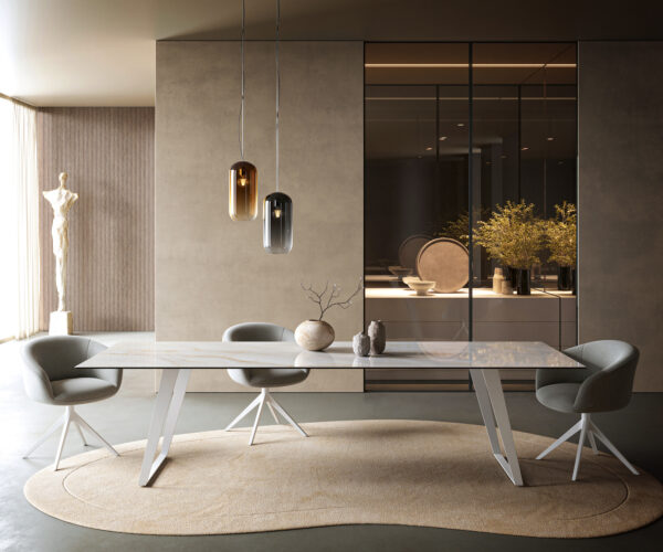 • Stolová doska je vyrobená z jedného celistvého keramického plátu, čo jej dodáva jedinečnosť v harmonickom celkovom vzhľade.