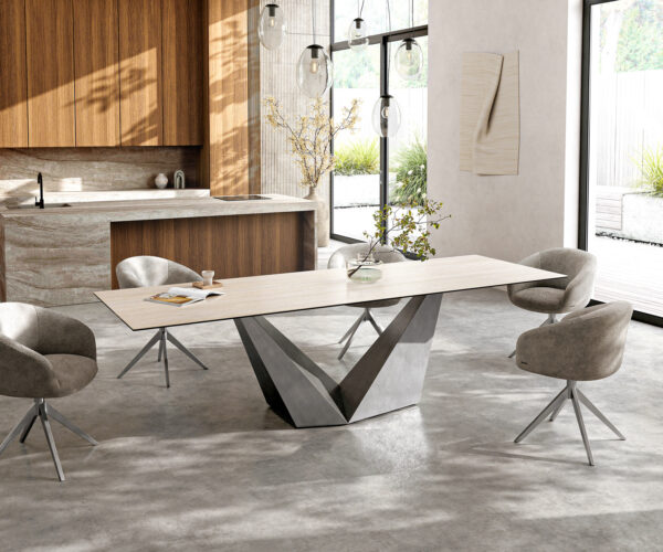 S elegantným efektom prírodného kameňa – Stôl Edge Travertino Bianco