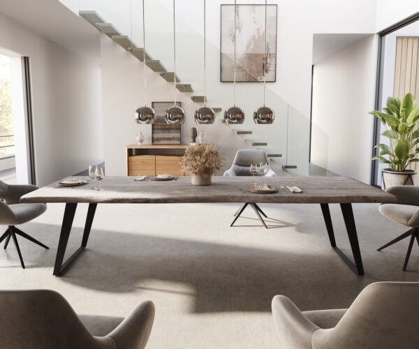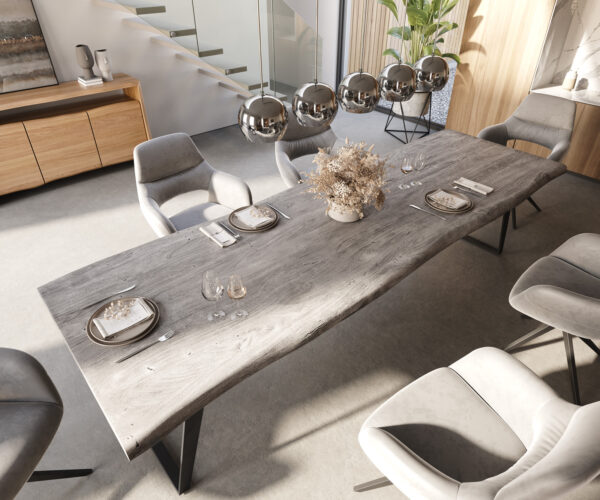 Live-Edge s okrajmi stromu v platinovej farbe – ideálny pre tvoj jedálenský priestor