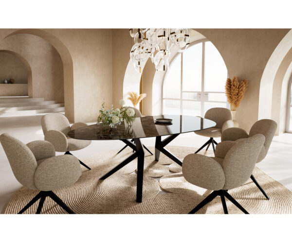 Jedálenský stôl Edge Emperador Extra bol inšpirovaný jedinečnou krásou vzácneho mramoru. Ako pod lupou, každý jednotlivý prvok, každý farebný prechod a každá drobná žilka ušľachtilého kameňa je verne reprodukovaná pomocou najmodernejšej technológie. Stolová doska Edge získava vďaka prekvapivému scénickému efektu zvláštnu komplexnosť a hĺbku. Stolová doska je vyrobená z pravej talianskej keramickej dosky Laminam®. Táto má celosvetovo vynikajúcu povesť pre svoju mimoriadne vysokú kvalitu. Majstrovsky vyrobená z jedného kusu keramiky, žilkovanie a farebné prechody v teplých hnedých tónoch žiaria bez prerušenia alebo rušivých spojov. Náročné vysokolesklé leštenie dodáva mramorovému vzhľadu ešte väčšiu autenticitu a takmer mystickú auru. Oválny tvar stola podporuje efekt elegantného mramorového vzhľadu a robí z tohto jedálenského stola nezabudnuteľný vrchol v tvojej jedálni.