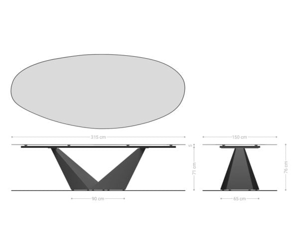 • Rozmery stolovej dosky: Š315 x H150 x V1 cm