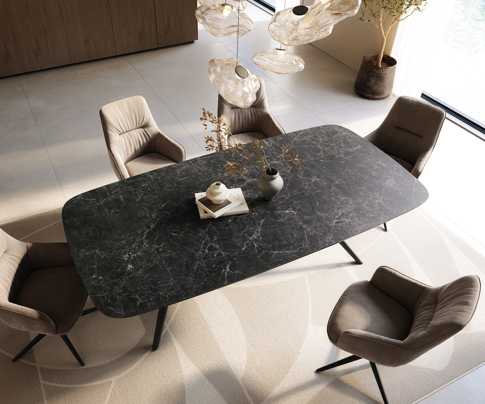 • Stolová doska je vyrobená z jedného celistvého keramického plátu a získava svoju jedinečnosť v harmonickom celkovom vzhľade.