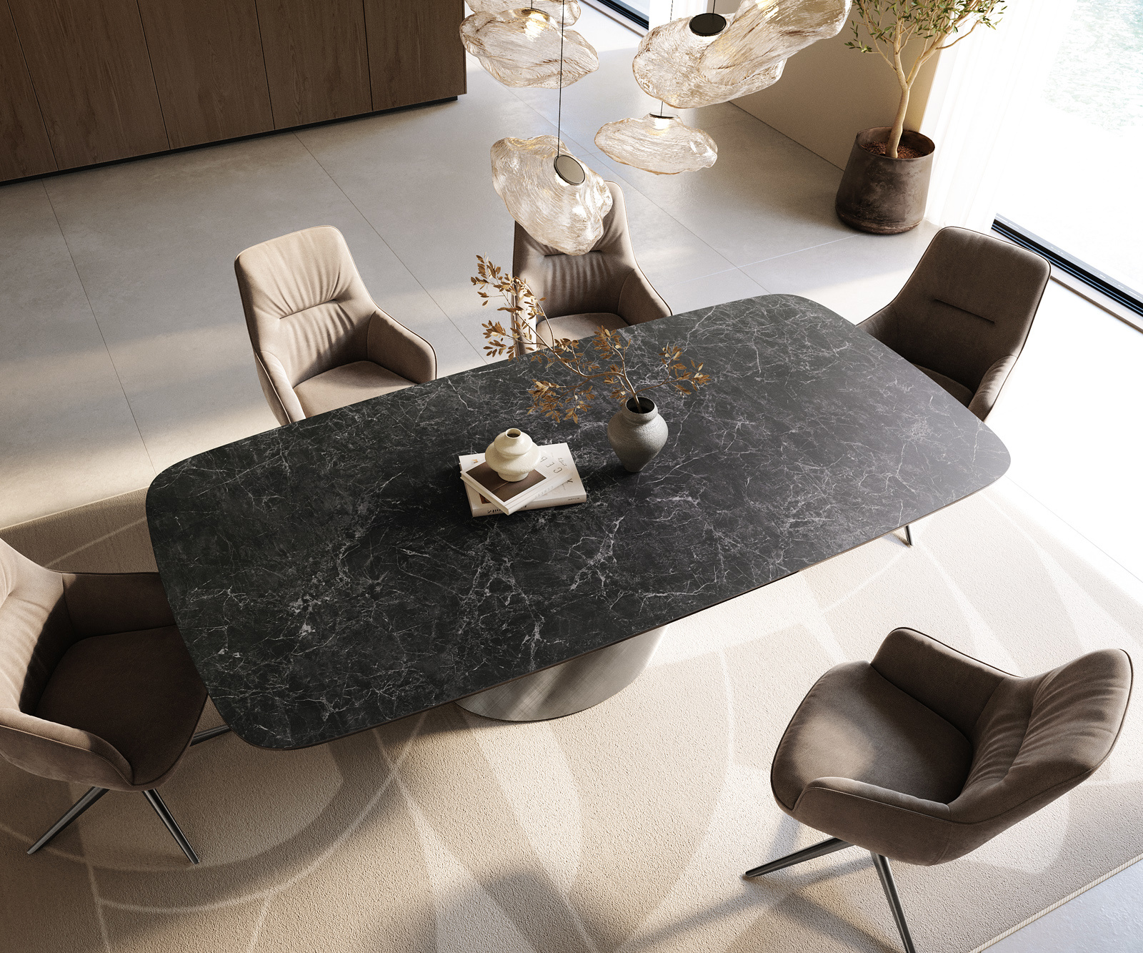 - Stolová doska je vyrobená z jedného celistvého keramického kusu a získava svoju jedinečnosť v harmonickom celkovom vzhľade.
