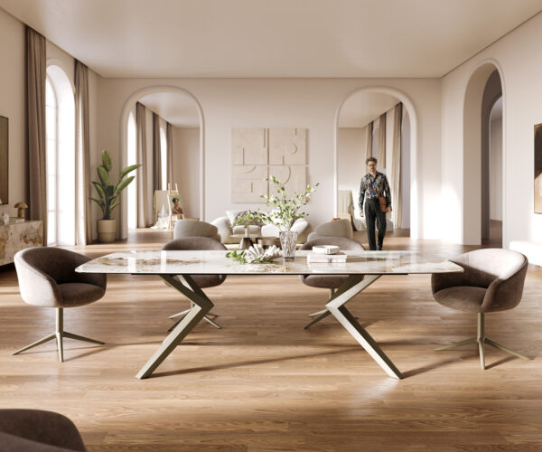 • Stolová doska je vyrobená z jedného celistvého keramického plátu a získava tak svoju jedinečnosť v harmonickom celkovom vzhľade.