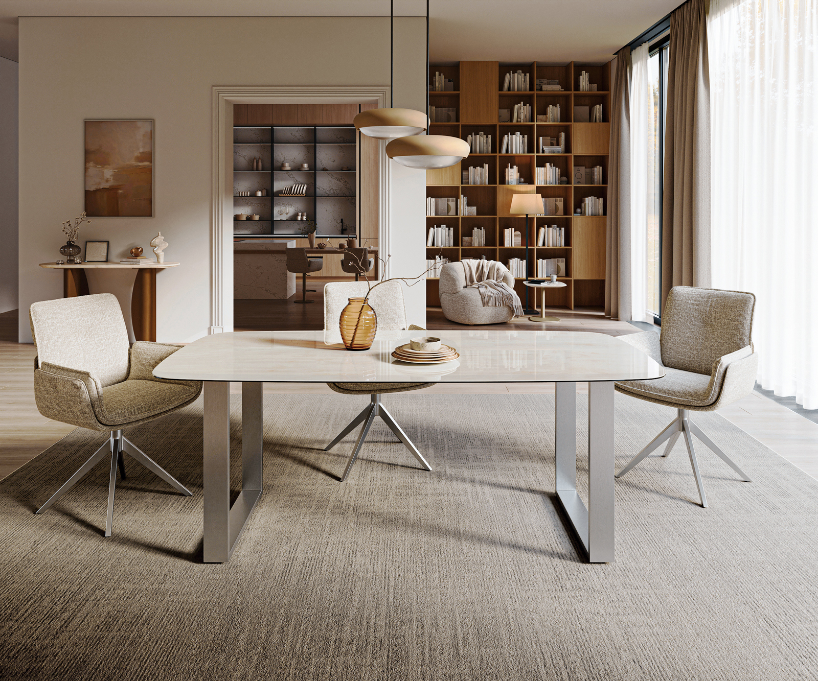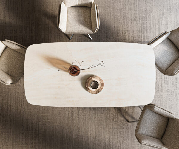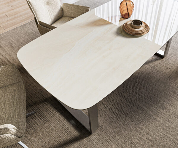 Stolová doska je vyrobená z jedného kusu keramickej dosky a získava svoju jedinečnosť v harmonickom celkovom vzhľade.