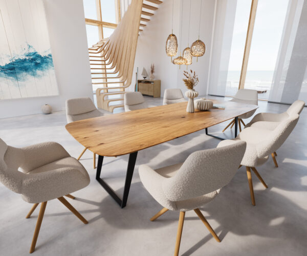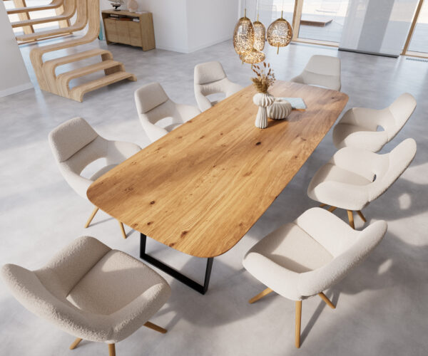 Jedálenský stôl Edge so švajčiarskou hranou z hodnotného dubového dreva