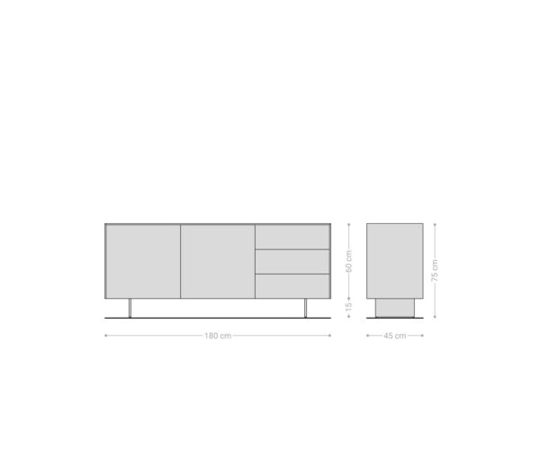 - Poznámka: nožičky je možné namontovať v dvoch rôznych rozostupoch; každý kus nábytku je unikát a môže sa líšiť v hrúbke materiálu, tvare a rozmeroch; prosím, berte na vedomie, že korpus tohto kusu nábytku je dodávaný už zmontovaný;