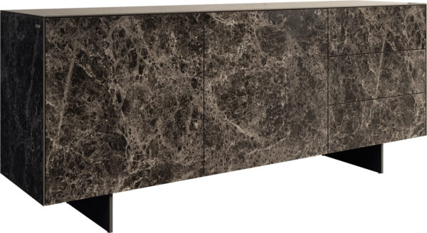 Komoda CUOR zaujme pravou talianskou Laminam® keramikou v sýtych, intenzívnych tmavohnedých odtieňoch, ktoré pripomínajú pôsobivú farebnú hru tmavého mramoru. Jemná, no zároveň výrazná kresba dodáva ikonickému dizajnu CUOR hĺbku a výraznosť, ktoré zostanú nezabudnuteľné. Elegantné nohy z kvalitnej, kefovanej nerezovej ocele v závesnom dizajne zabezpečujú pevný stoj a pôsobivú ľahkosť.
