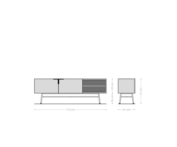 Komoda ponúka za svojimi dvomi dvierkami veľa úložného priestoru a disponuje dvoma otvorenými priehradkami, ktoré odľahčujú vzhľad a poskytujú miesto pre dekoratívne prvky. Zaoblené čierne kovové úchytky sú špeciálnym dizajnovým prvkom a svojím tvarom T zabezpečujú rovnostranný záver. Jemne spracovaná čierna kovová podstava nôh dodáva komode stabilný základ a moderný, vzdušný vzhľad. Či už v obývačke, jedálni alebo predsieni – tento kus nábytku spája praktickú funkčnosť s estetickou rafinovanosťou a dodáva tvojmu domovu jedinečný nádych.
