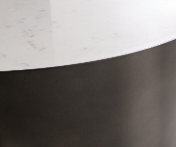 Vďaka svojmu okrúhlemu tvaru pôsobí stolík mimoriadne harmonicky a skvele sa kombinuje s rôznymi štýlmi zariadenia. Elegantná kombinácia materiálov z mramoru a kovu vyžaruje kvalitu, pričom predmontáž zaručuje maximálny komfort. Majstrovské dielo pre všetkých, ktorí milujú čisté línie a jemnú rafinovanosť.